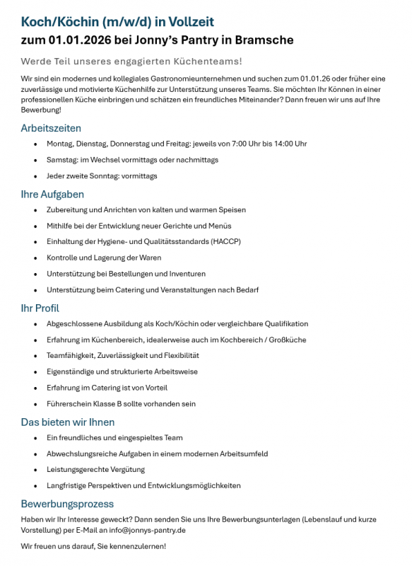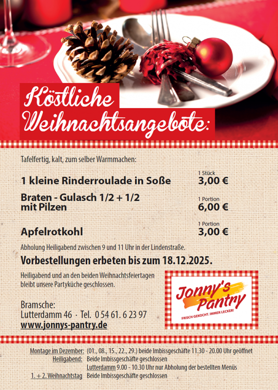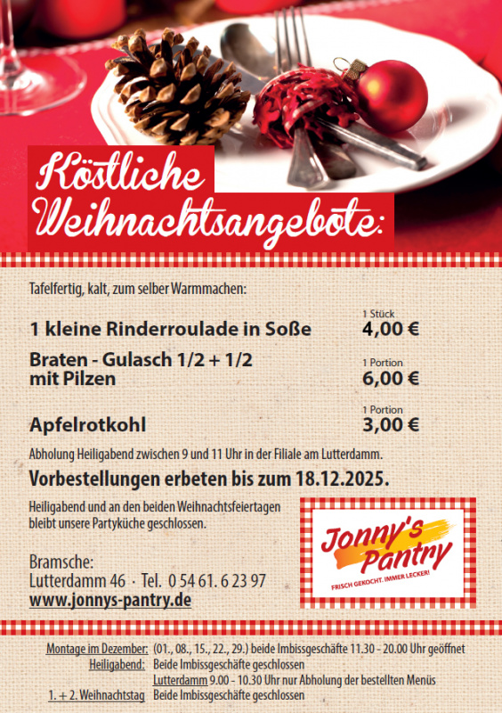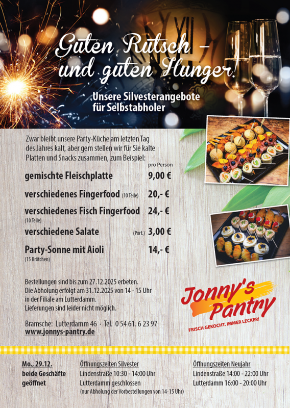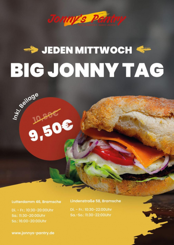 Seit über 50 Jahren in Bramsche gilt bei Jonny's Pantry: schnell und lecker! Egal ob unsere legendären Burger, der tägliche Mittagstisch oder unser Schnitzeltag: bei Jonny’s schmeckt´s einfach!